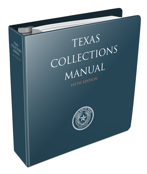 Updated pages for the Texas Collections Manual, fifth edition, will be mailed to current owners by early June 2018. The updates include a corrected form 4-2, “Demand and Notice Letter—Consumer Debt.”