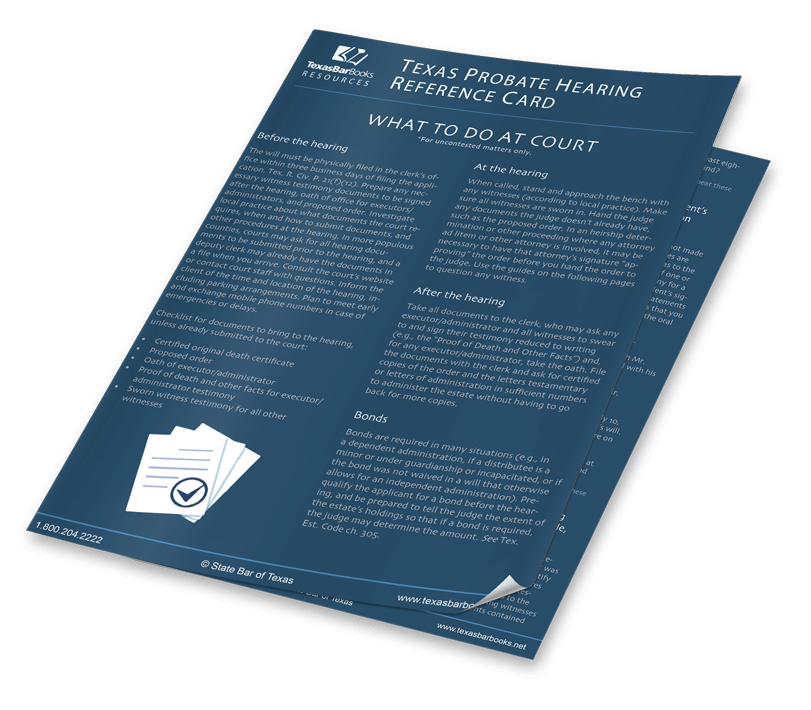 - The contents of the Texas Probate Hearing Reference Card are taken and adapted from material in the Texas Probate System published by the State Bar of Texas
